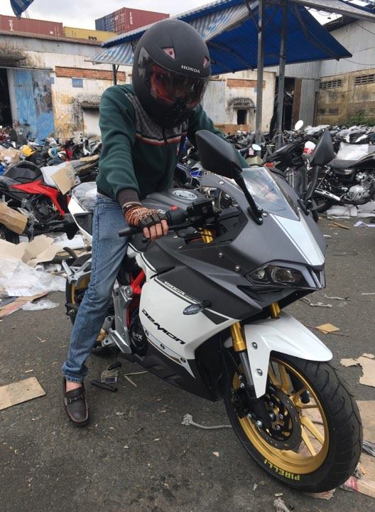 Bạn nam 1m70 ngồi trên chiếc xe GPX Demon 150GR